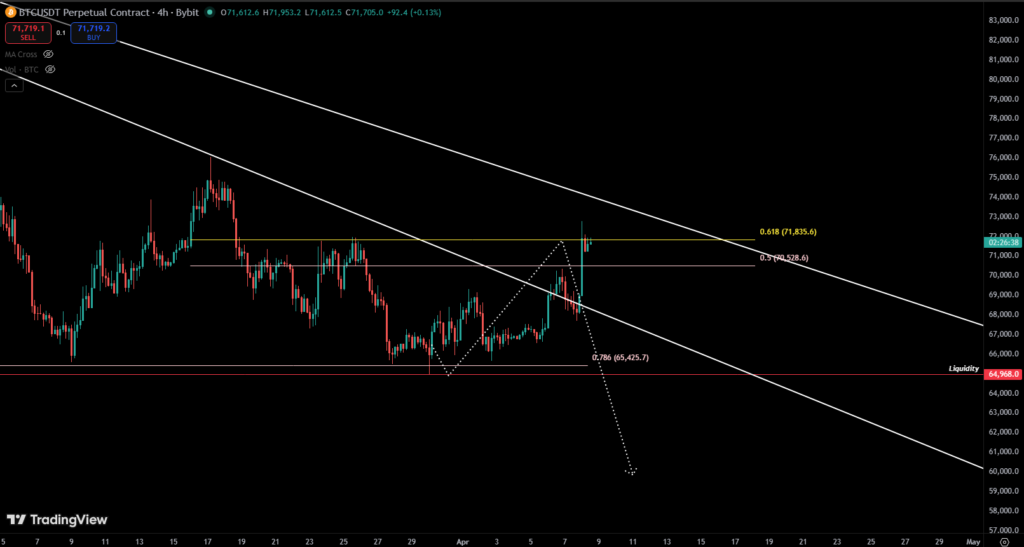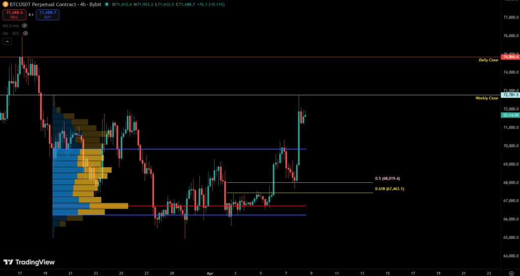 Vùng 70K sẽ đóng vai trò then chốt trong việc xác định xu hướng tiếp theo. Trader nên tránh FOMO và ưu tiên chiến lược giao dịch an toàn, đặc biệt là canh Short tại các vùng kháng cự quan trọng.